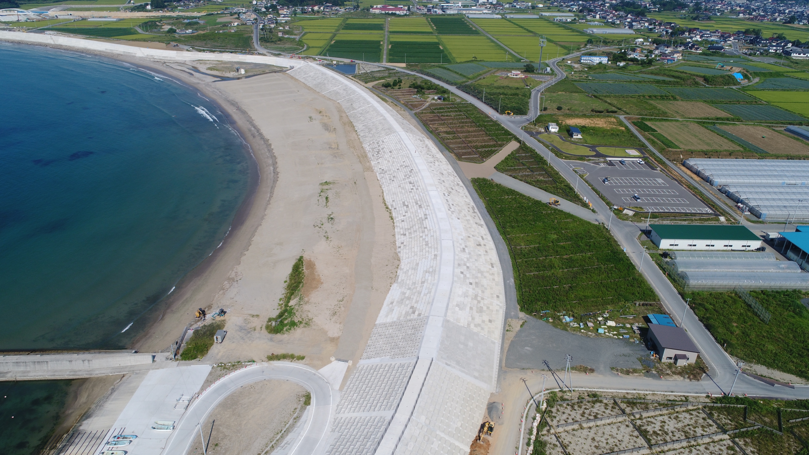 東日本大震災で被災した海岸防潮堤の復旧工事