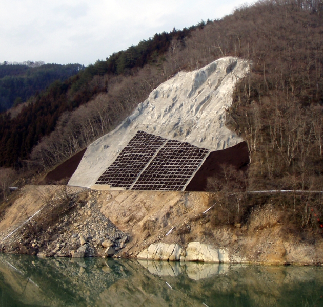 令和2年の東日本豪雨で崩落した線路脇山肌の補強工事